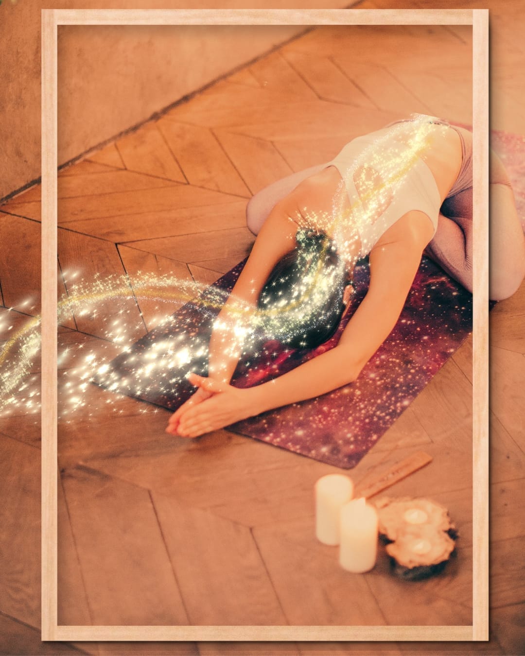 Tu auras besoin d'une bougie , un tapis de yoga, un petit coussin et un gros coussin type bolster ou traversin, une couverture ou un plaid