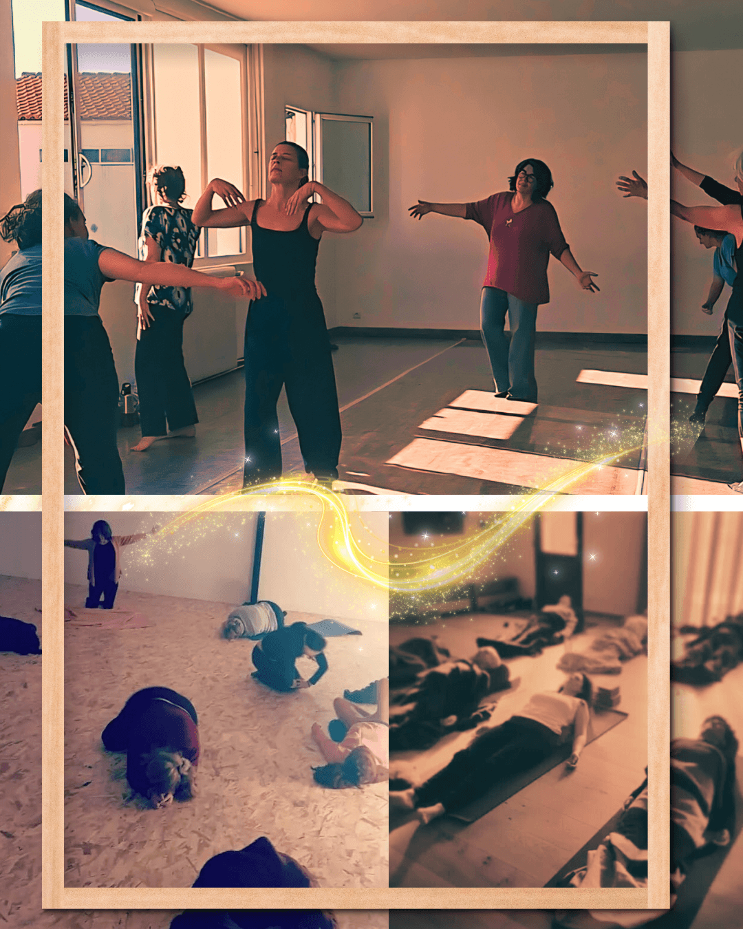 Le yoga, la danse libre & vivante et la voix, ensemble, soutiennent un véritable chemin de transformation intérieure.